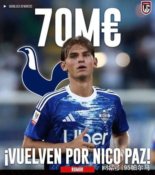 事实上,热刺曾在今年夏天尝试用7000万欧元撬走尼科·帕斯,只是早就甩掉升班马标签的科莫没有自断一臂或者成全他人的理由。
