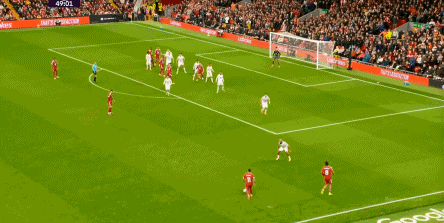 利物浦的这个进球,来自于定位球进攻结束之后的抢断形成的二次进攻,而定位球的出现,其实源自于德里赫特的一次不佳解围: