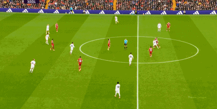 这样一来,你才能看到库尼亚一直回撤到中圈接球,衔接斜向转移,通过倒三角线路捕捉利物浦双后腰防守问题的这一脚中柱的射门: