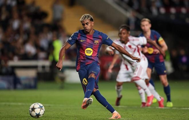第68分钟拉什福德突入禁区被放倒,为巴萨赢得一粒点球,身价达到2亿欧元的天才少年亚马尔稳稳主罚命中,将领先优势重新扩大到了3-1,他也凭借18岁100天的年龄超越了姆巴佩,成为了欧冠历史上打入6球最年轻的球员,攻势不减的巴塞罗那,在第74分钟再次攻破客队大门,拉什福德禁区左侧原地摆腿上演梅开二度,比分也来到了4-1。